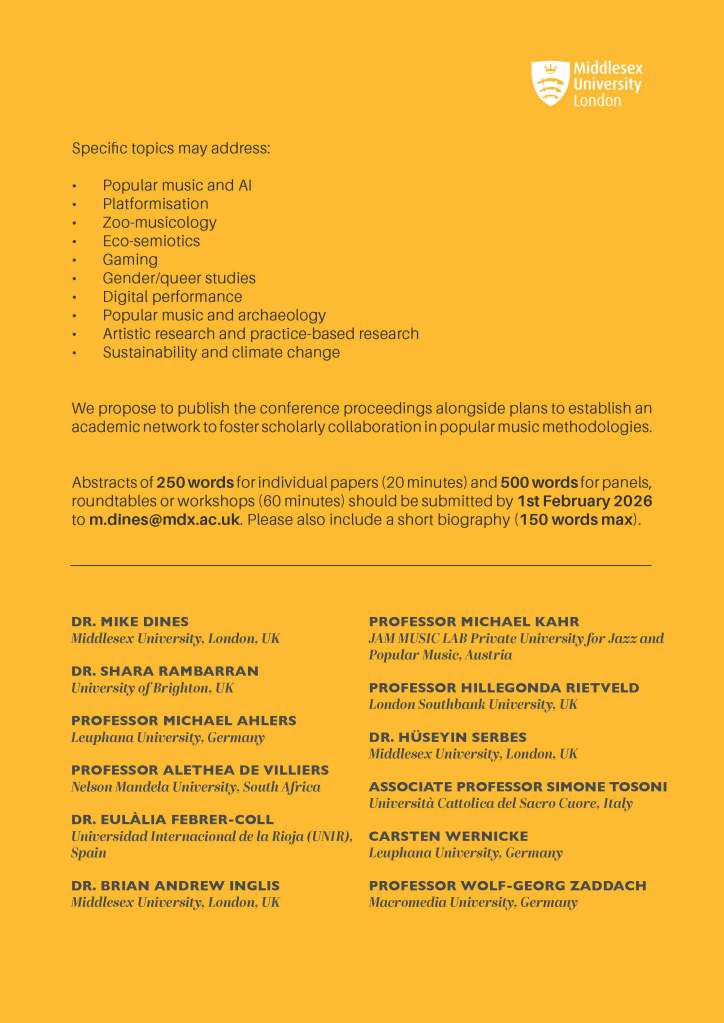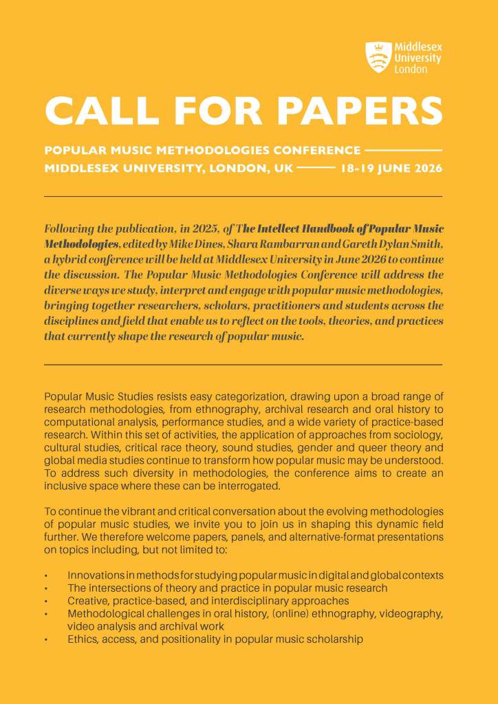Call for Papers – Popular Music Methodologies Conference